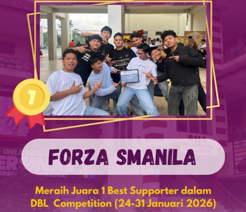 BANDAR LAMPUNG – Forza Smanila berhasil mengharumkan nama SMA YP Unila Bandar Lampung dengan meraih Juara 1 Best Supporter dalam ajang DBL Competition yang berlangsung pada 24–31 Januari 2026. Prestasi ini menjadi bukti semangat, kekompakan, dan kreativitas para siswa dalam mendukung tim kebanggaan sekolah mereka di arena kompetisi bergengsi tersebut.