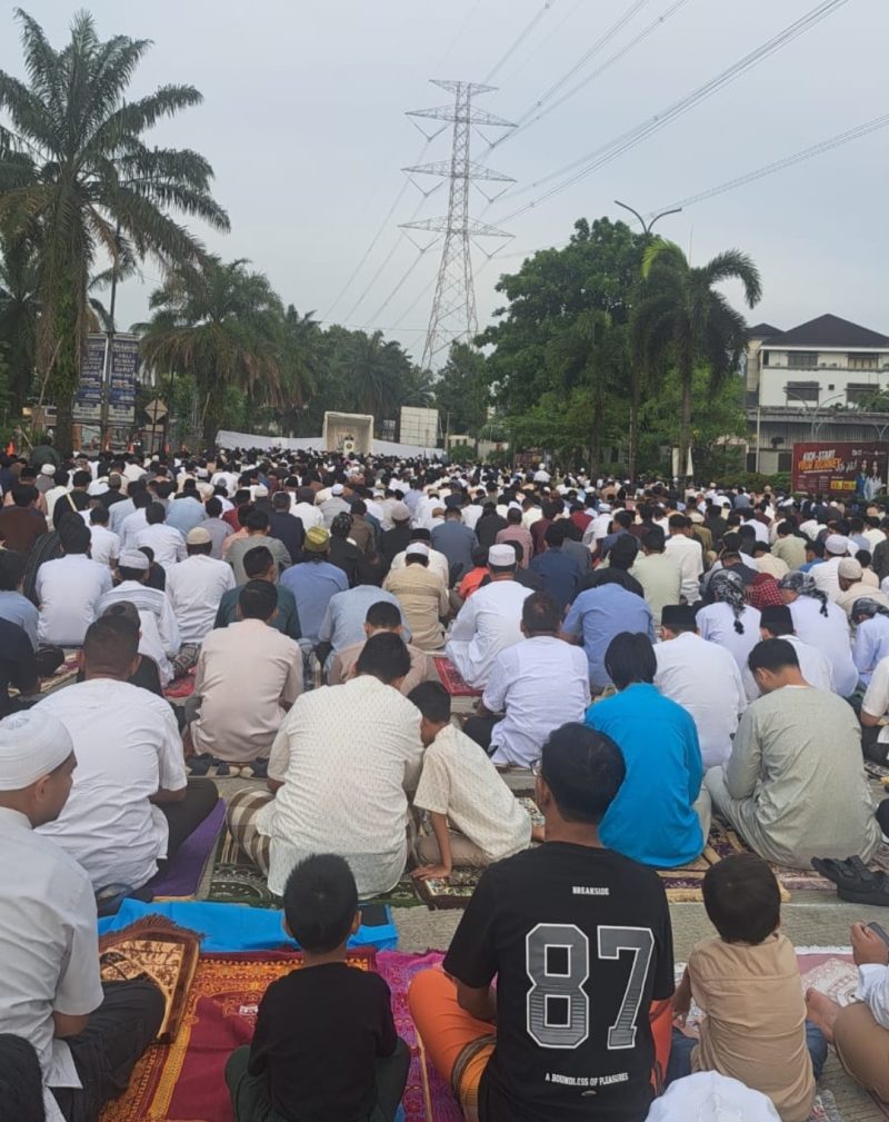 Kota Depok, TERAS INFORMASI – Ribuan umat Muslim memenuhi kawasan Grand Depok City (GDC) pada Sabtu pagi (21/3/2026) untuk melaksanakan Sholat Hari Raya Idul Fitri 1447 Hijriah. Sejak subuh, jamaah datang dari berbagai perumahan sekitar GDC, menciptakan suasana religius yang khusyuk dan penuh kebersamaan di hari kemenangan.